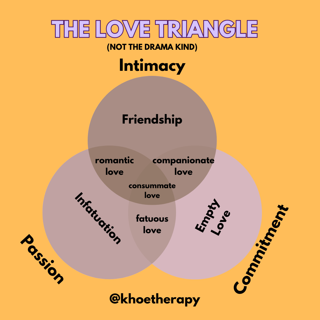 What I call the “love triangle” is Sternberg’s theory of love. this tool is a way I like to zoom out of relationships and see what components make up what Sternberg calls “love profiles”. continue reading for Sternberg’s 8 love profiles. what kind of love have you experienced?